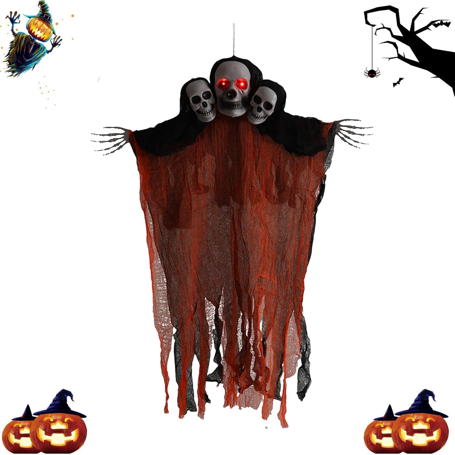 Lighting Terror Screaming Ghost – Hangable Screaming Three Heads Skeleton